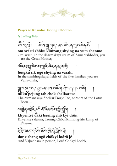 Prayer to Khandro Tsering Chödrön by Tarthang Tulku